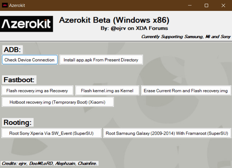 - Upcoming Feature: Azerokit is soon going to introduce support for installing ZIP files using Fastboot which will eliminate the requirement of a custom recovery to flash custom mods, themes or system updates.