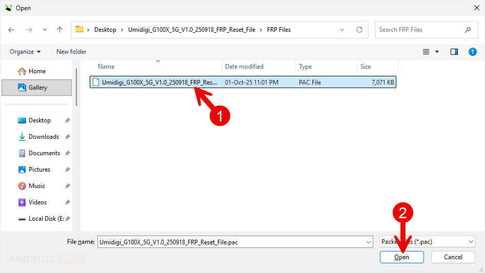 - Locate and select the Umidigi G100X 5G FRP file you downloaded earlier.