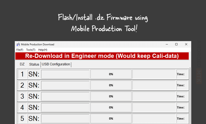 Mobile Production Tool is a small Windows utility that allows users to flash or install Stock Firmware (.dz) on FeaturePhone devices powered by MStar Chipset.