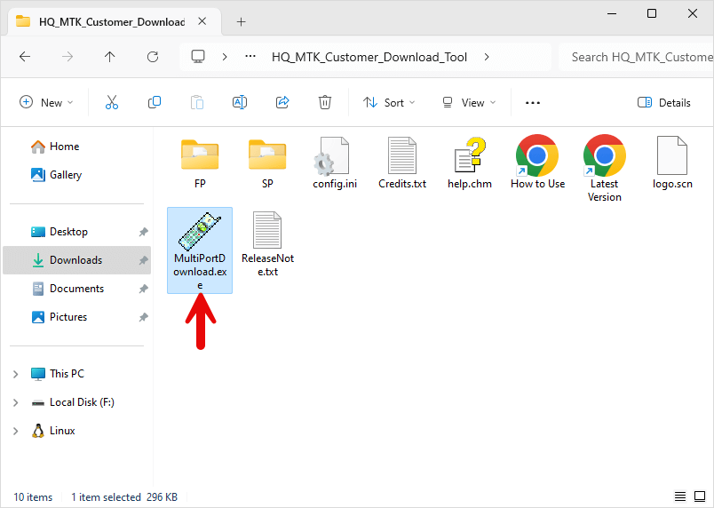 - To proceed, locate the “HQ_MTK_Customer_Download_Tool” folder, and double-click on the “MultiPortDownload.exe” to launch the tool.