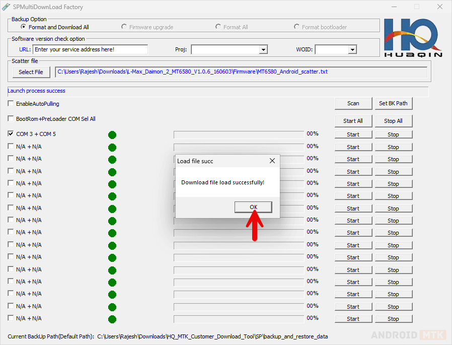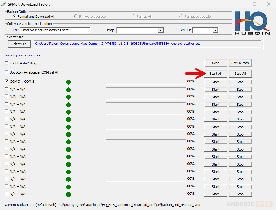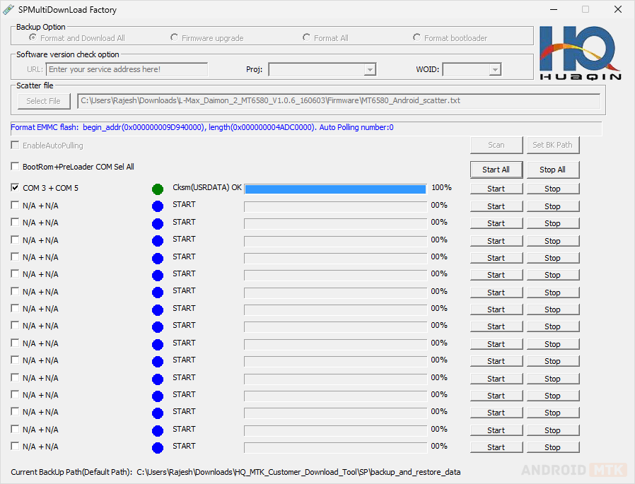 Take Backup It is highly recommended to backup your device data before using the HQ MTK Customer Download Tool to flash the firmware, as it may permanently erase the data from your Mediatek device.