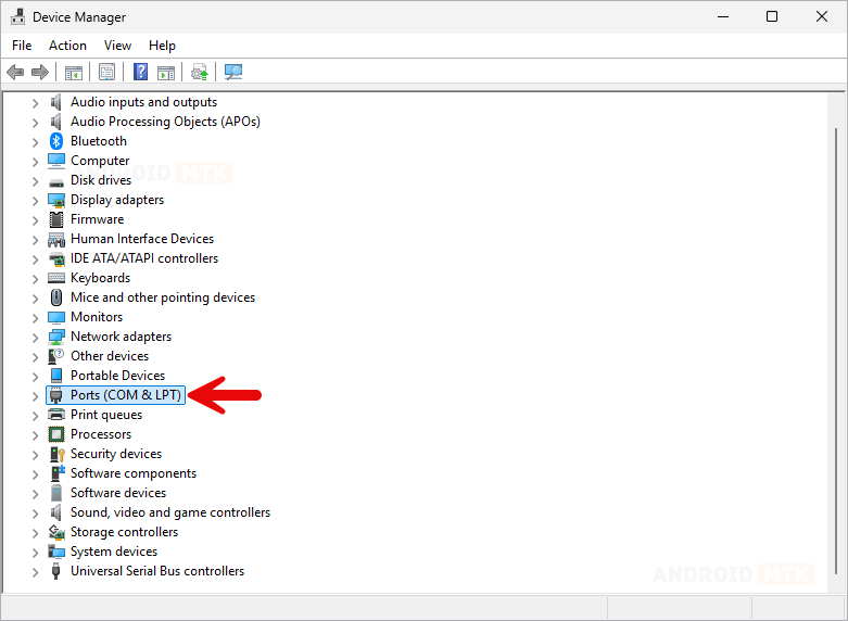 - Once the computer detects the device, you can check the device port ID from the device manager.