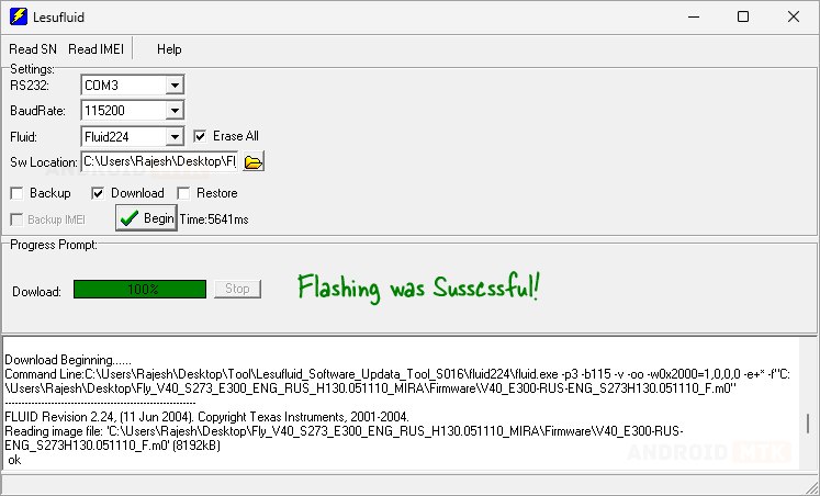 Congratulations! You have successfully flashed the stock firmware. Close the Lesufluid Update Tool, disconnect your device from the computer, and restart it.
