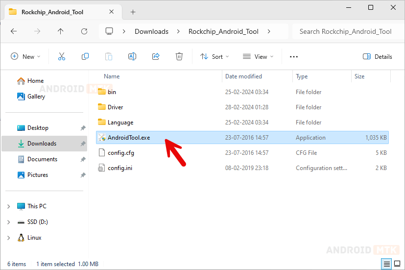 1. To proceed, you need to find the RockChip Android Tool folder and then open the file called “AndroidTool.exe”.