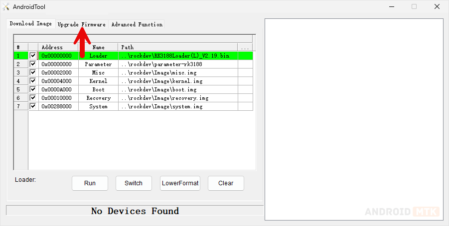 6. RockChip Android Tool Firmware Tab RockChip Android Tool Select Firmware
